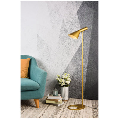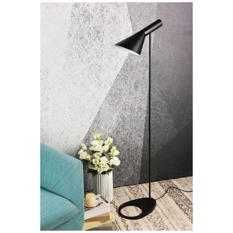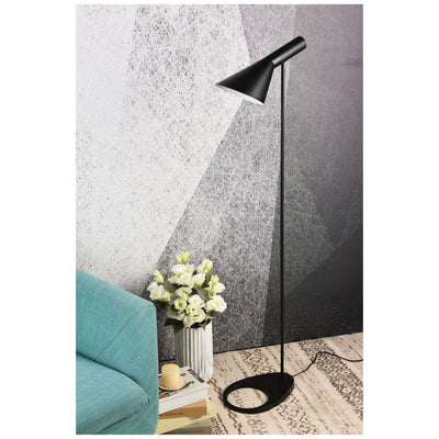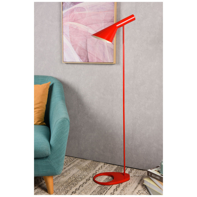 The Juniper Collection lamp will bring a pop into the room. The cone shape creates a striking, yet modest design that will complete a room. Available in black, brass, white, or red finish, this unique touch is an eye-catching piece. This product is dimmable and requires one E26 socket. Light bulbs not included.