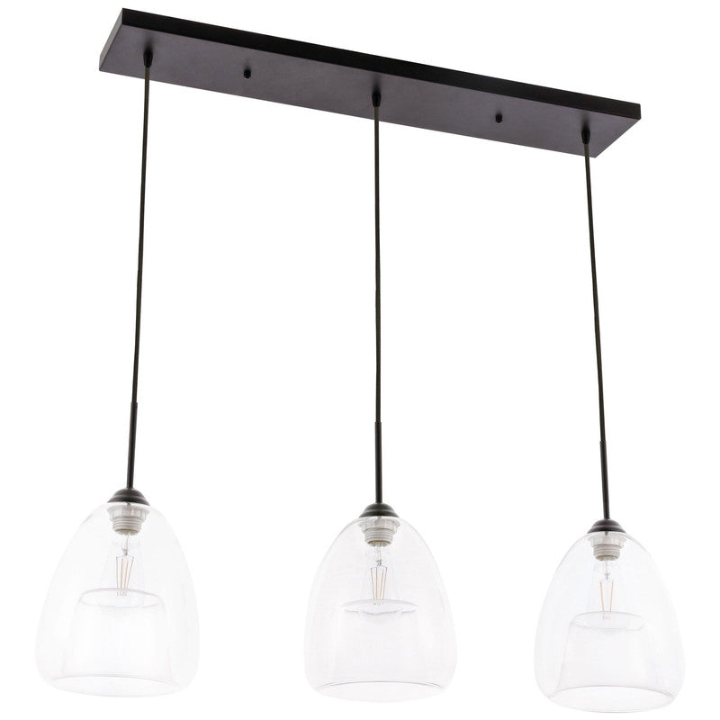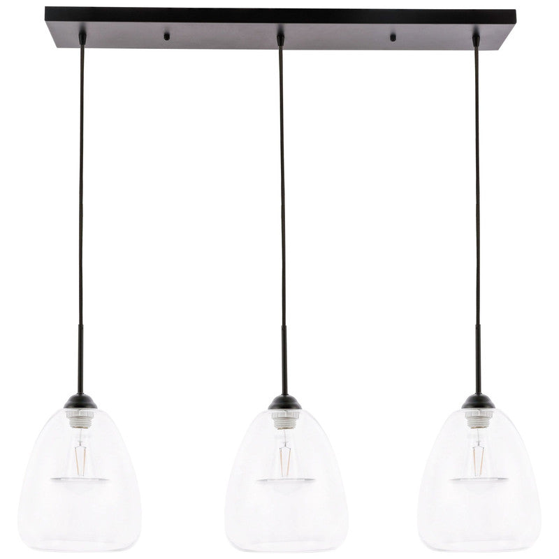 The Kason Collection pendant lamp is contemporary and the perfect lighting fixture in any home. Its urban-style design will create a contemporary aesthetic and the light can illuminate any room in your home, whether its your dining room, living room, or entry way. The three lights hang suspended from a canopy, ensuring that no corner will be left in shadow. Available in a black finish with a hemispherical shade, brighten your home with light and contemporary style (light bulbs not included).