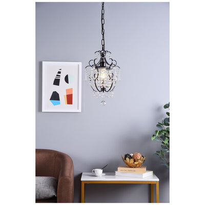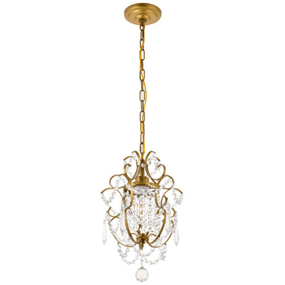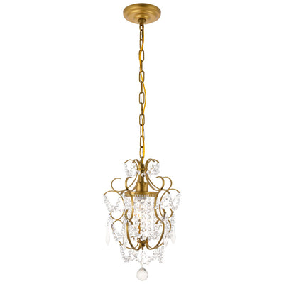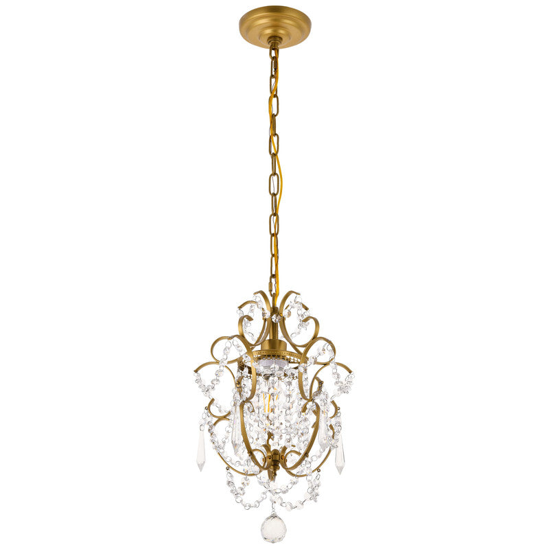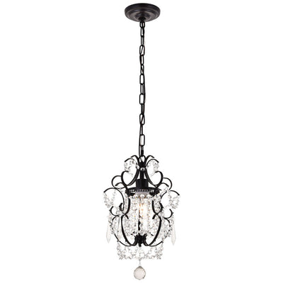 The Kirin pendant fixture is a dazzling bravura of visual whimsy, with swirling brass finish arms that dance around and through brilliant strands of beaded crystal chains cascading from a bright headpiece. The fanciful look also features crystal spears and a multifaceted crystal ball suspended below. This fixture packs a lot of appeal into a relatively compact space (11 inches in diameter) and is sure to add a distinctive accent to a dining room, bedroom, or foyer.