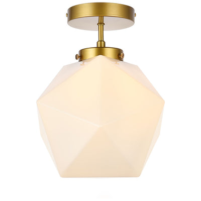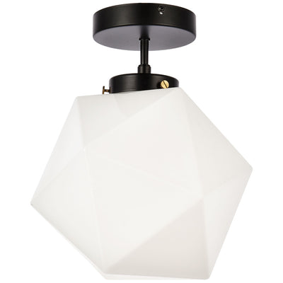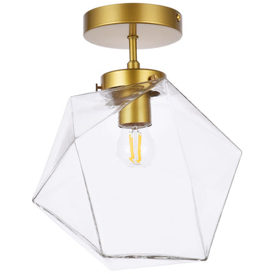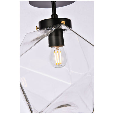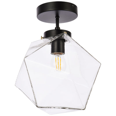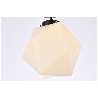 The Lawrence Collection ceiling lamp is the perfect choice if you are looking to add visual interest with functional illumination into the room. The beauty lies in its unique shape and colors. It is available in black, brass, or chrome finish with either a clear or white glass shade. This product is dimmable and requires one E26 lamp. Light bulbs not included.