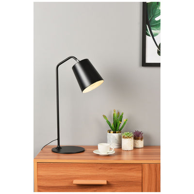 The Leroy Collection table lamp will fit right into your room. The bell shaped shade creates a simple but sleek design that is stylish and useful. Available in black, white, red, or brass finish this is a table necessity. This product is dimmable and requires one E26 socket. Light bulbs not included.