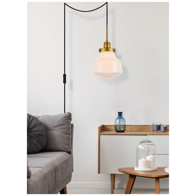 The Lyle Collection is a stunningly functional, yet simplistically lovely light. The geometric shade creates a clean form that will fit well in any space, large or small. Its versatile simplicity allows for this fixture to blend in well with the rest of your room, while still maintaining its own bright personality. Hanging from a 15 foot plug in black cord, it'll always be the perfect height for your dining room table or study space. Available in a black or brass finish, and a clear bubble or frosted white shade, let this pendant lamp illuminate your room (light bulbs not included). Simply hang this piece on the provided swag hooks and plug it in for an effortlessly easy installation - can be hung from a sloped or vaulted ceiling.