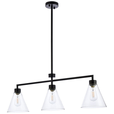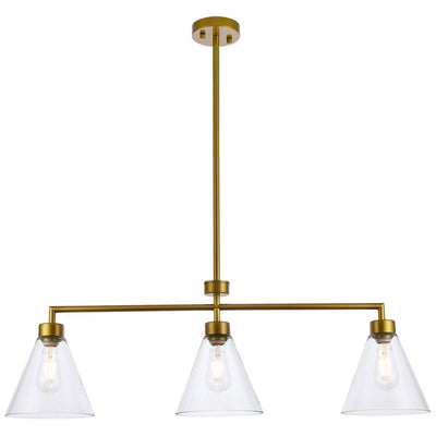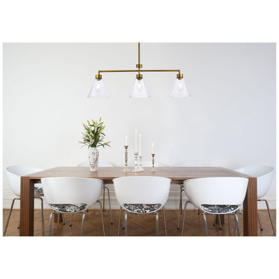 The Mera Collection pendant light is a refined accent piece to have. The cone shaped glass shade and straight cord will fit seamlessly to any room. Available in a black or brass finish this light will illuminate its surrounding. This product is dimmable, requires three E26 socket. Light bulbs not included. Perfect to illuminate over your kitchen island.