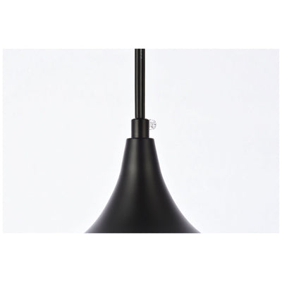 - Single chalice-shaped aluminum shade in a matte-black finish