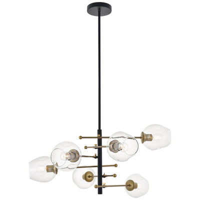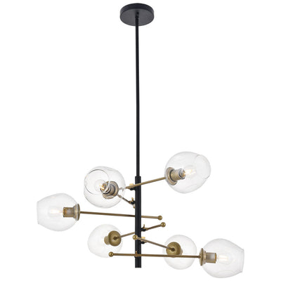 - Two-toned brass and black finish 6-light pendant with lights on brass rods that can be adjusted to face a certain direction