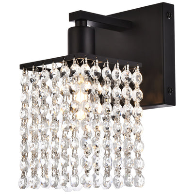 The Phineas Collection of lights always exude elegance and sparkling beauty--and why wouldn't it, with its beautiful curtain of clear crystal strands that shimmer with each passing second as light passes through? Available in a stunning black finish, not only will your home be illuminated, your guests will be charmed and in awe of the dancing crystal lights, and you will be pleased with how this wall lamp can elevate any room into a luxurious and glamourous world (light bulbs not included).