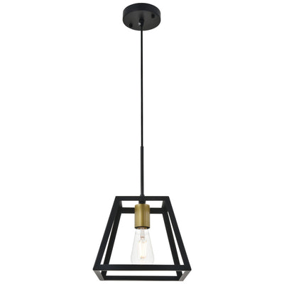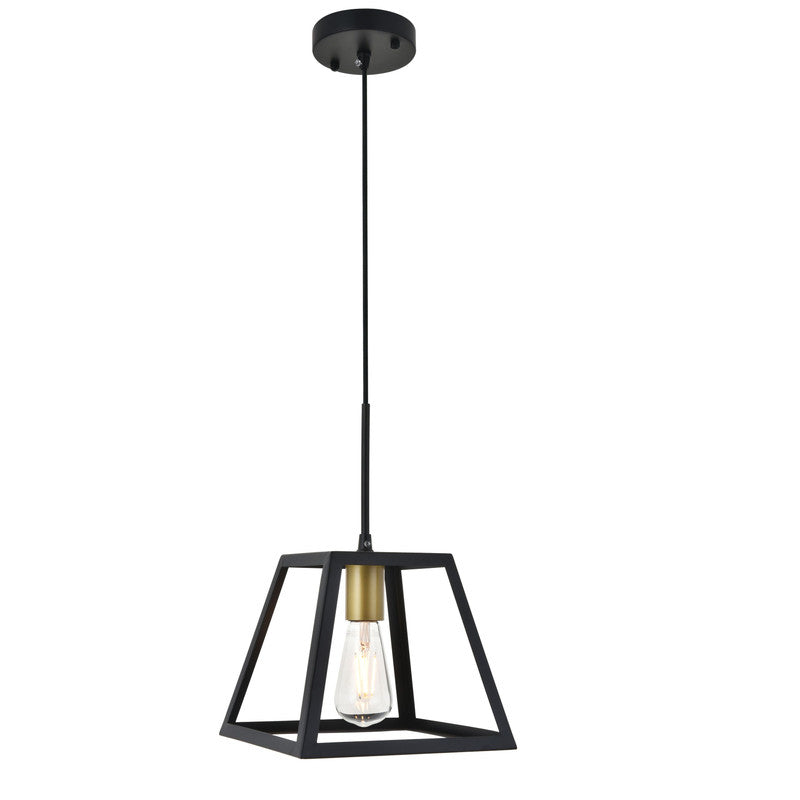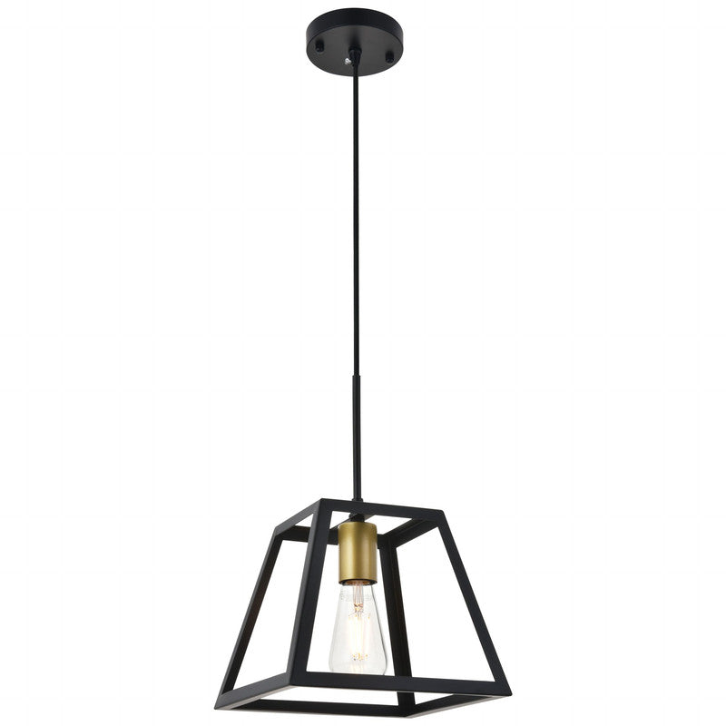 - Modern black finish pendant light with an open geometric frame