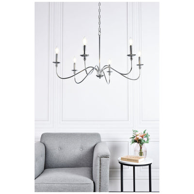 The Rohan 6 light chandelier is available in Polished Nickel or Polished Brass and emits a simple elegance with its classical design.