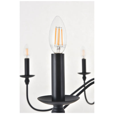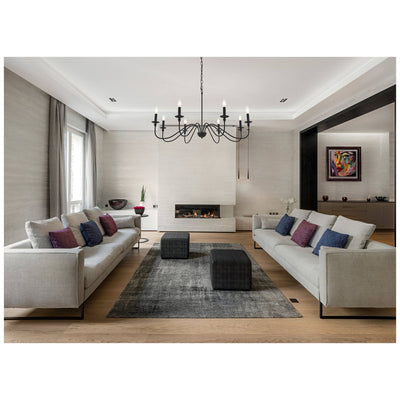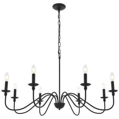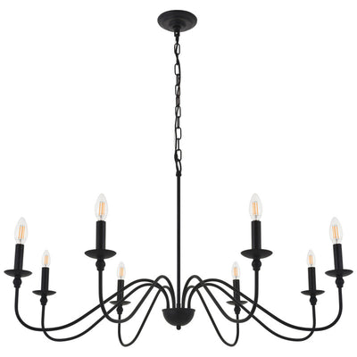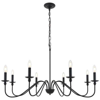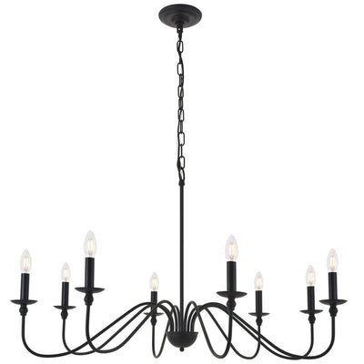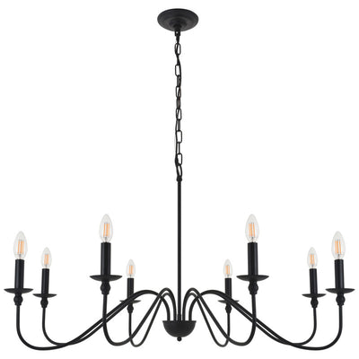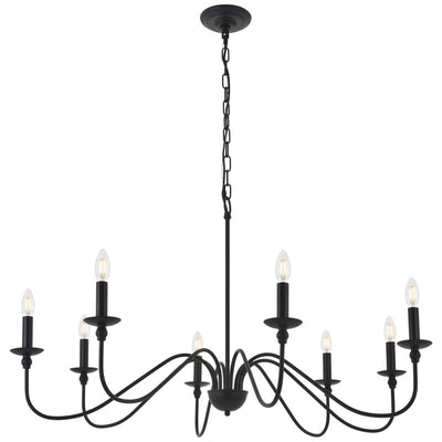- Minimalistic matte black chandelier pendant with 8 gently undulating arms and lights