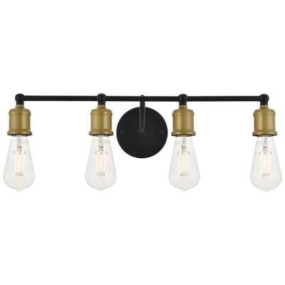 - Black finish 4-light wall sconce with an undulating arm and circular back plate