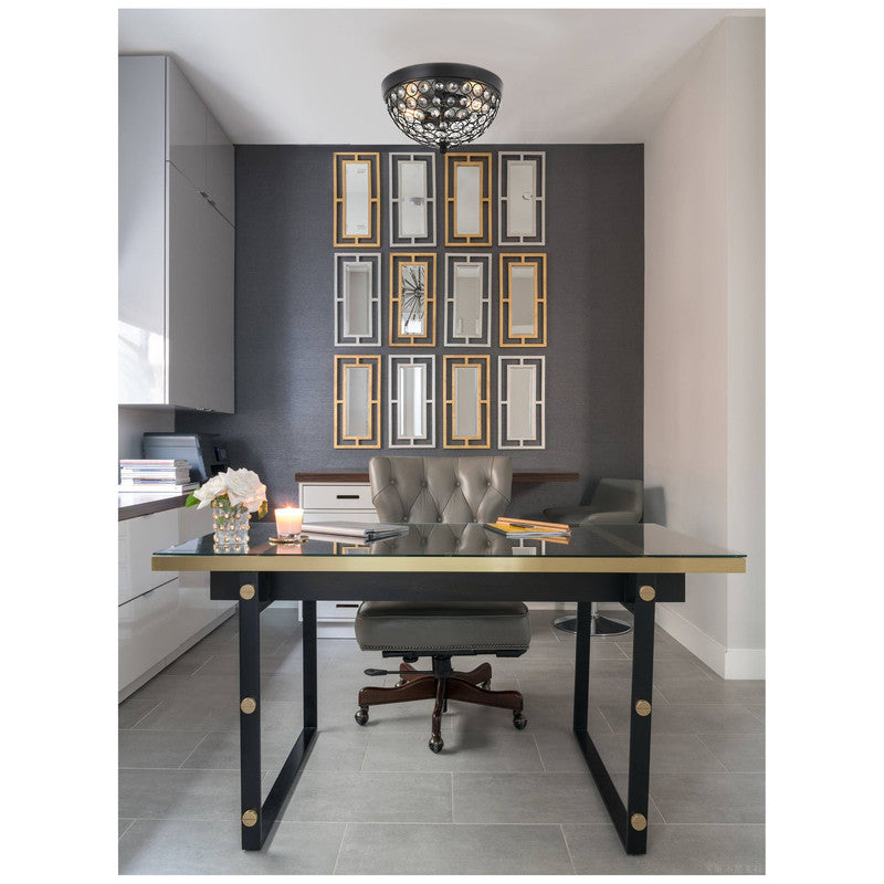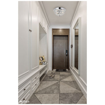 What could be better than a hemisphere of light and crystals? With the Taye collection flush mount in a chrome finish, crystals are beautifully aligned within the circular pattern of the frame--light shimmering through the sparkling objects, adding even more interest and intrigue. Whether it shines in the living room or powder room, the glamour itself will create a luxurious atmosphere.