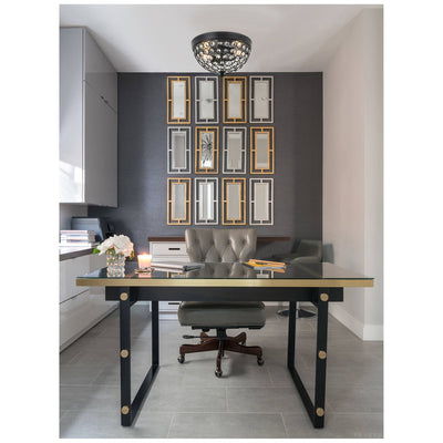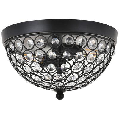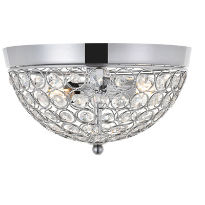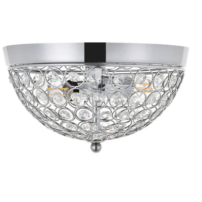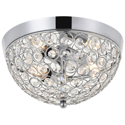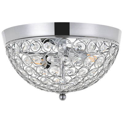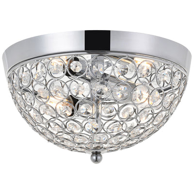 - Chrome finish flush mount with an open circle designed shade and accented with gleaming crystals within the circles