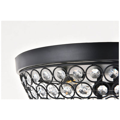 - Matte black finish flush mount with an open circle designed shade and accented with gleaming crystals within the circles