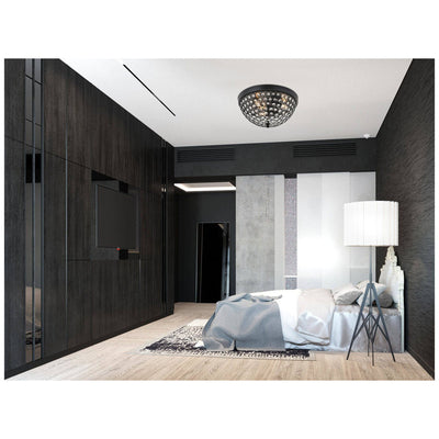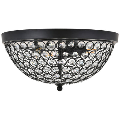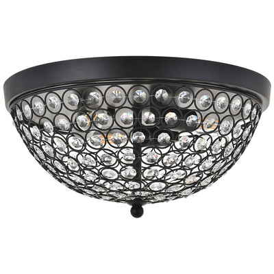 What could be better than a hemisphere of light and crystals? With the Taye collection flush mount in a Matte e black finish, crystals are beautifully aligned within the circular pattern of the frame--light shimmering through the sparkling objects, adding even more interest and intrigue. Whether it shines in the living room or powder room, the glamour itself will create a luxurious atmosphere.
