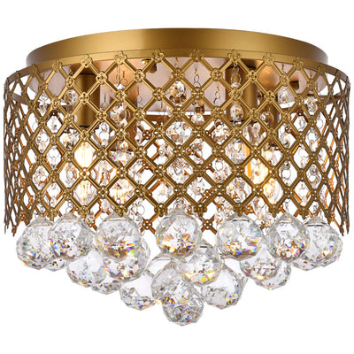 - Brass finish flush mount with lattice shade decorated with florets and strands of crystals and suspended faceted crystal balls