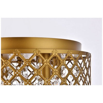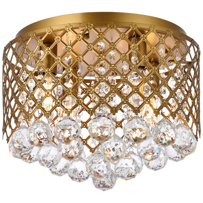 Enjoy the shimmering beauty of the Tully flush mount in a brass finish. The elegant lattice metal curtain allows for the hanging crystals to play and dance around the illuminating light, with larger crystals at the base peeking out to say hello. Lights on or off, this flush mount will surely make quite a statement in your home!