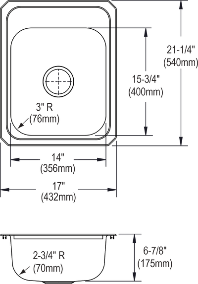 - CABINET SIZE: Minimum cabinet size for this sink is 21".