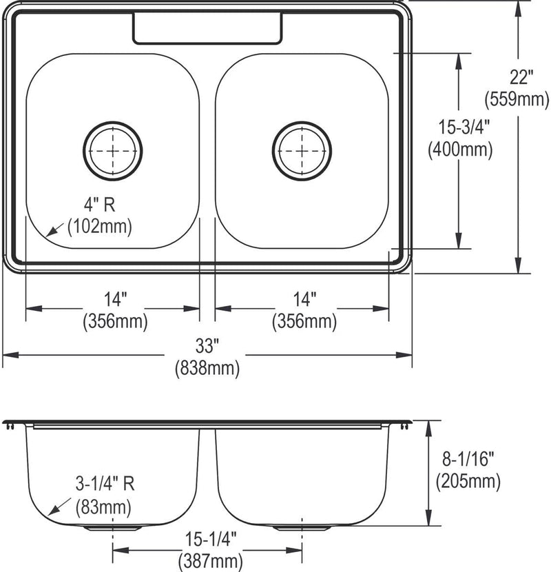 Elkay Dayton 33" Drop In Double Basin Stainless Steel Kitchen Sink