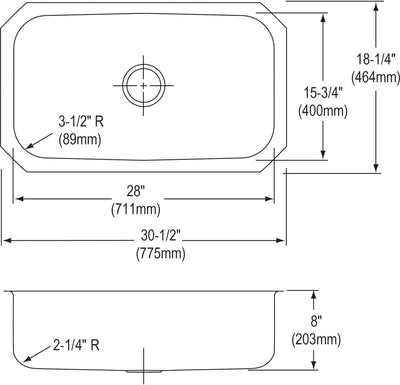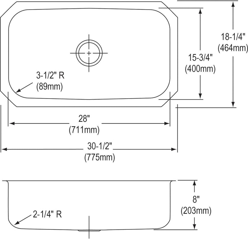 - CENTER DRAIN: Drain is conveniently placed in the center of the sink.