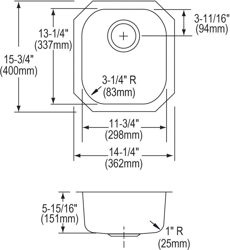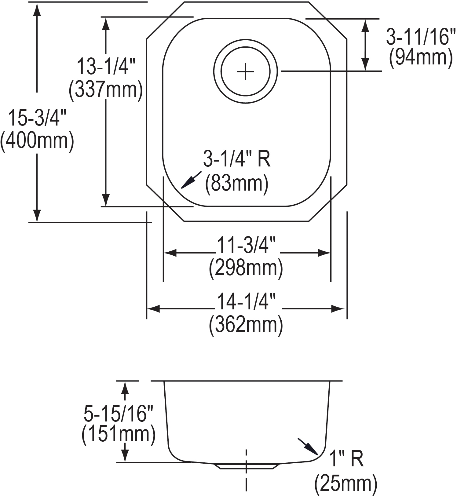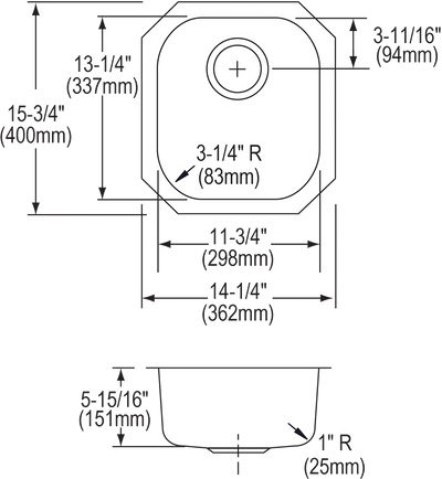 - Elkay Lustertone Classic Stainless Steel, 14-1/4" x 15-3/4" x 5-15/16", Single Bowl Undermount Sink