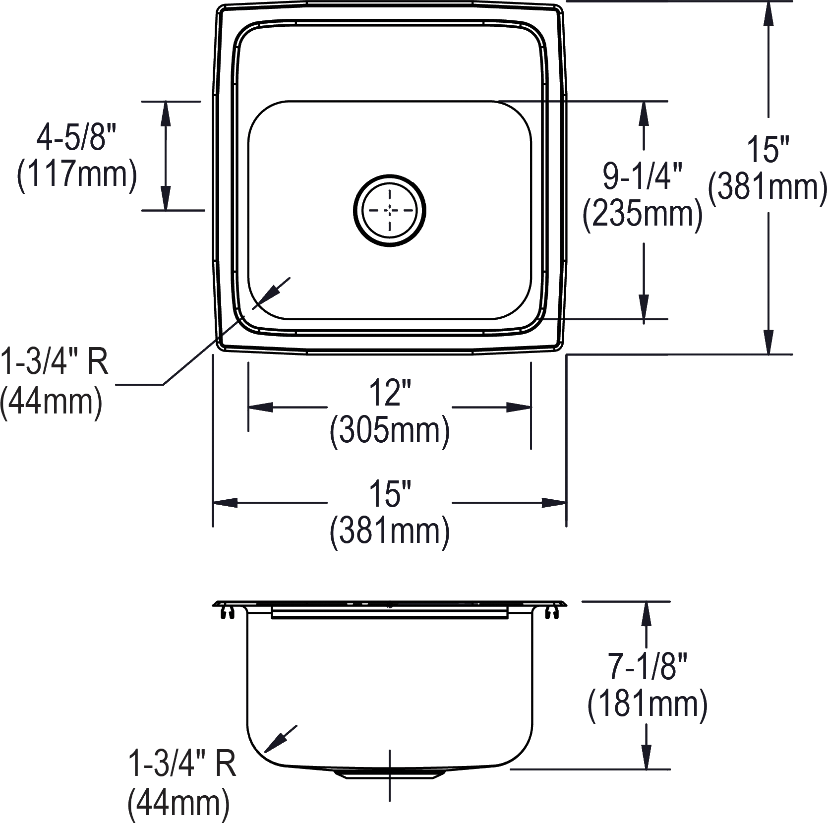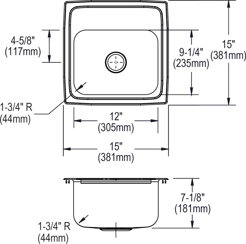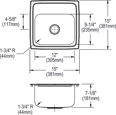 - CABINET SIZE: Minimum cabinet size for this sink is 18".