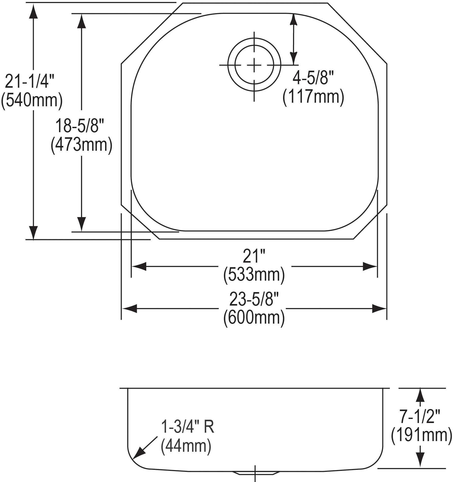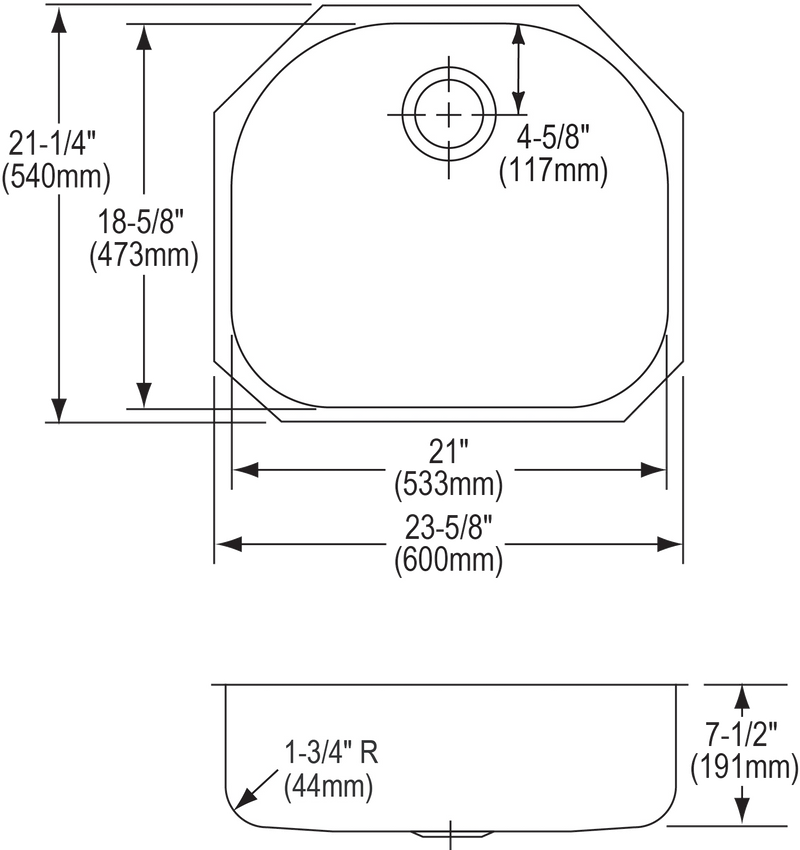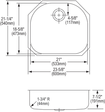 - DRAIN OPENING: Sink drain opening measures 3-1/2".