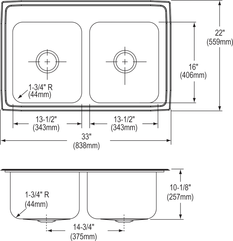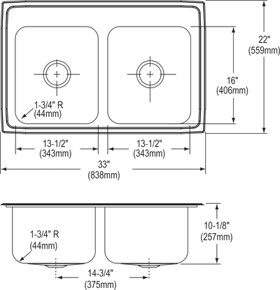 Elkay DLR3322104 - Elkay Lustertone Classic Stainless Steel 33" x 22" x 10-1/8", Equal Double Bowl D