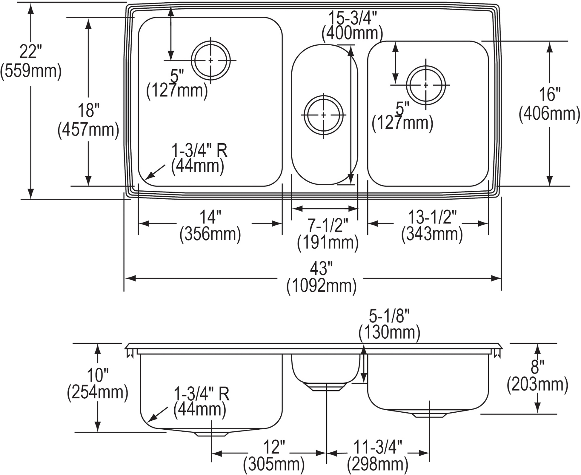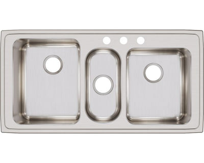 Elkay Lustertone Classic Stainless Steel 43" x 22" x 10", Triple Bowl Drop-in Sink