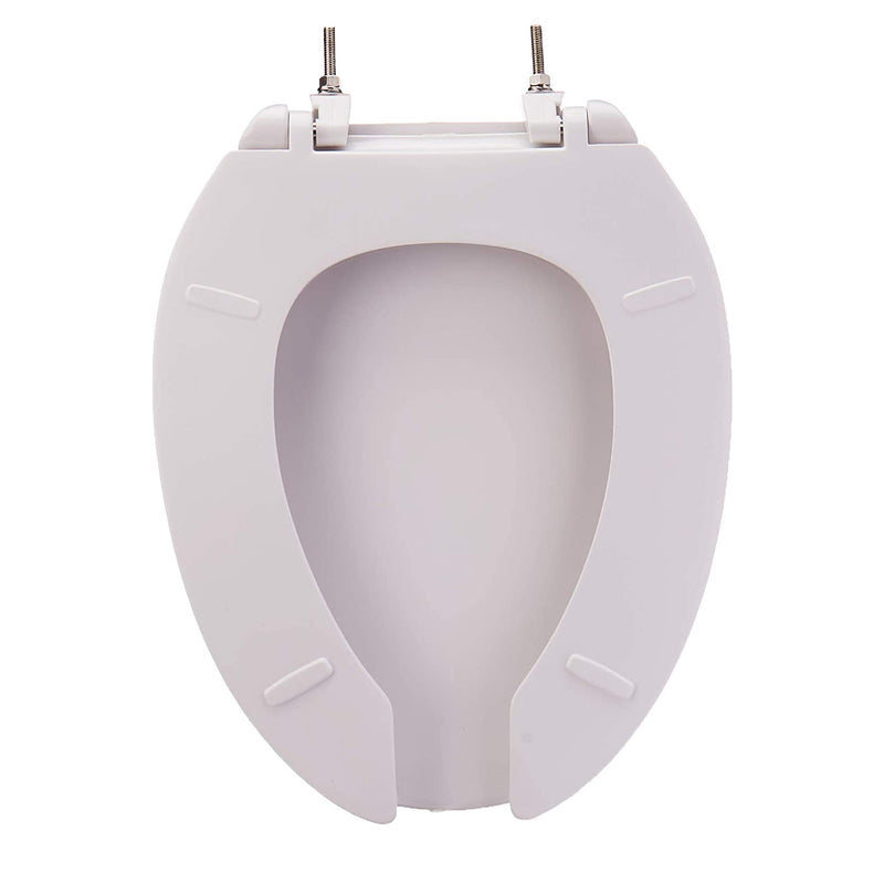 The TOTO elongated, open front toilet seat is built to last with an extremely rugged high impact solid plastic. Designed for commerical application, the contemporary contoured cover has a functional finger lift for convenient, sanitary handling. Includes seat with lid, four color matched bumpers, concealed hinge, and mounting hardware.