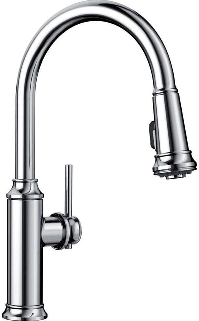 This collection, inspired by German wine country, is characterized by signature details such as vintage wine press handles and an innovative pull-down, dual-spray spout. It is the perfect example of classic European design infused with modern features and functionality. The EMPRESSA coordinates beautifully with modern farmhouse sinks.