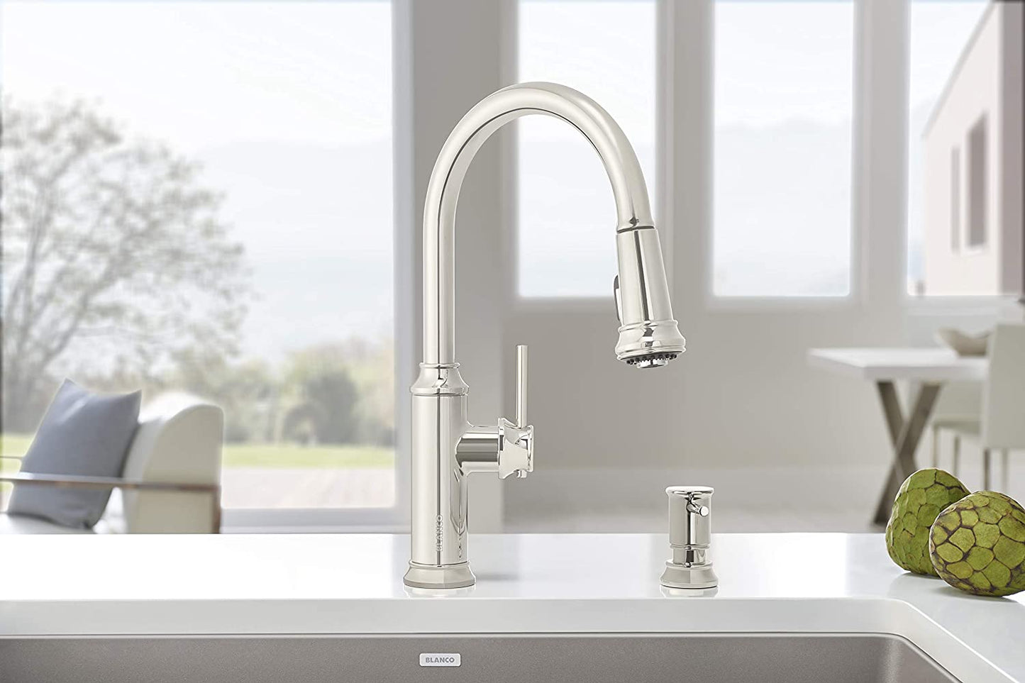 Blanco 442502 Empressa 1.5 GPM High Arc Pull-Down Dual Spray Kitchen Faucet in Polished Nickel