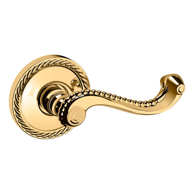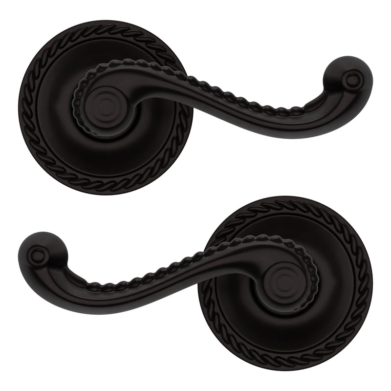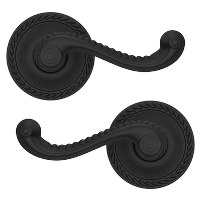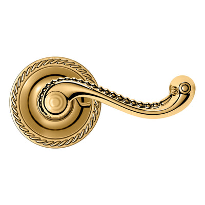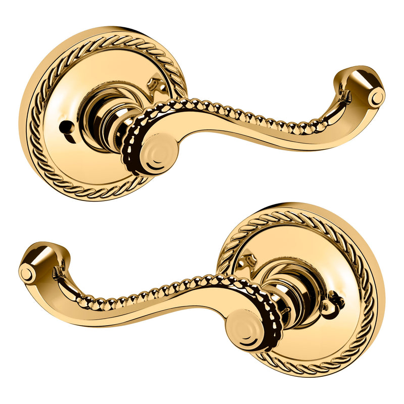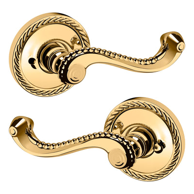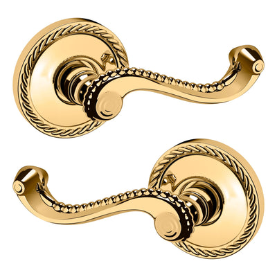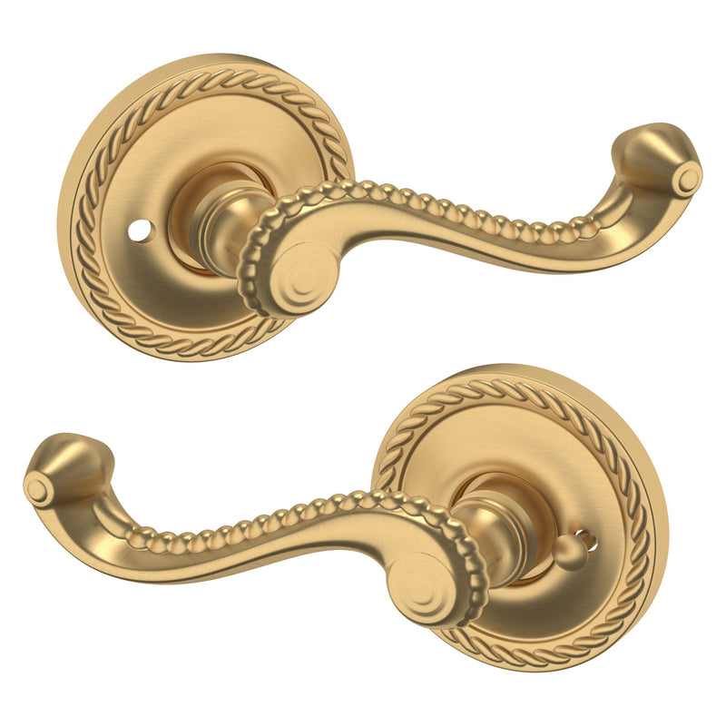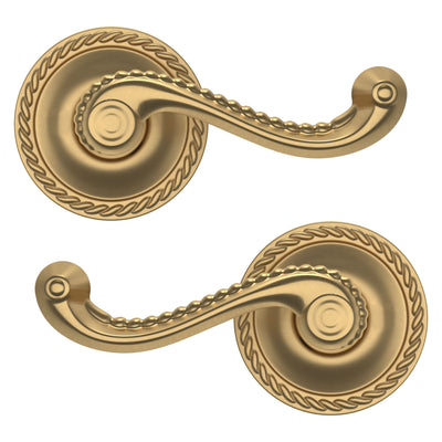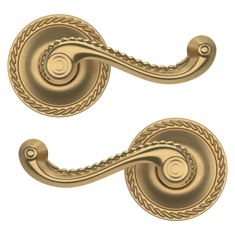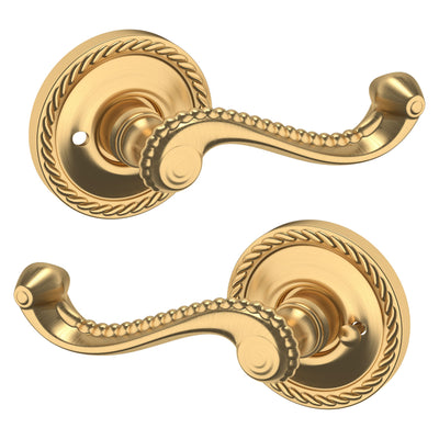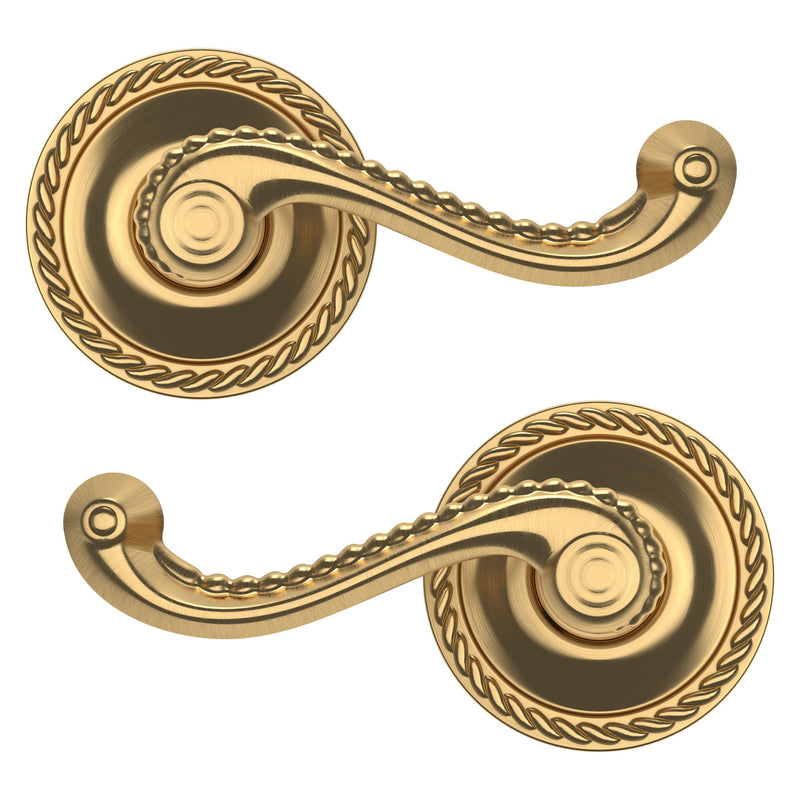 - Solid brass lever set paired with roses for any door with the 2.125" standard door preparation