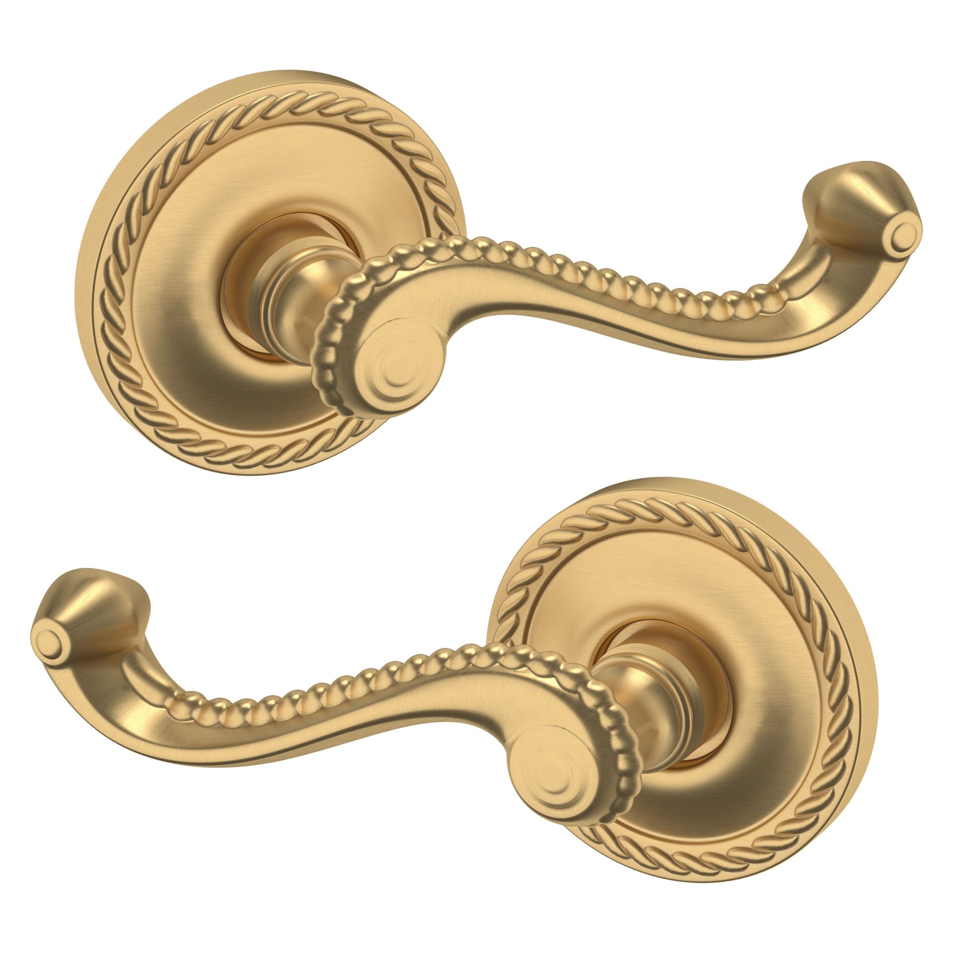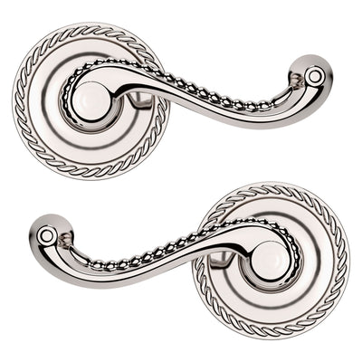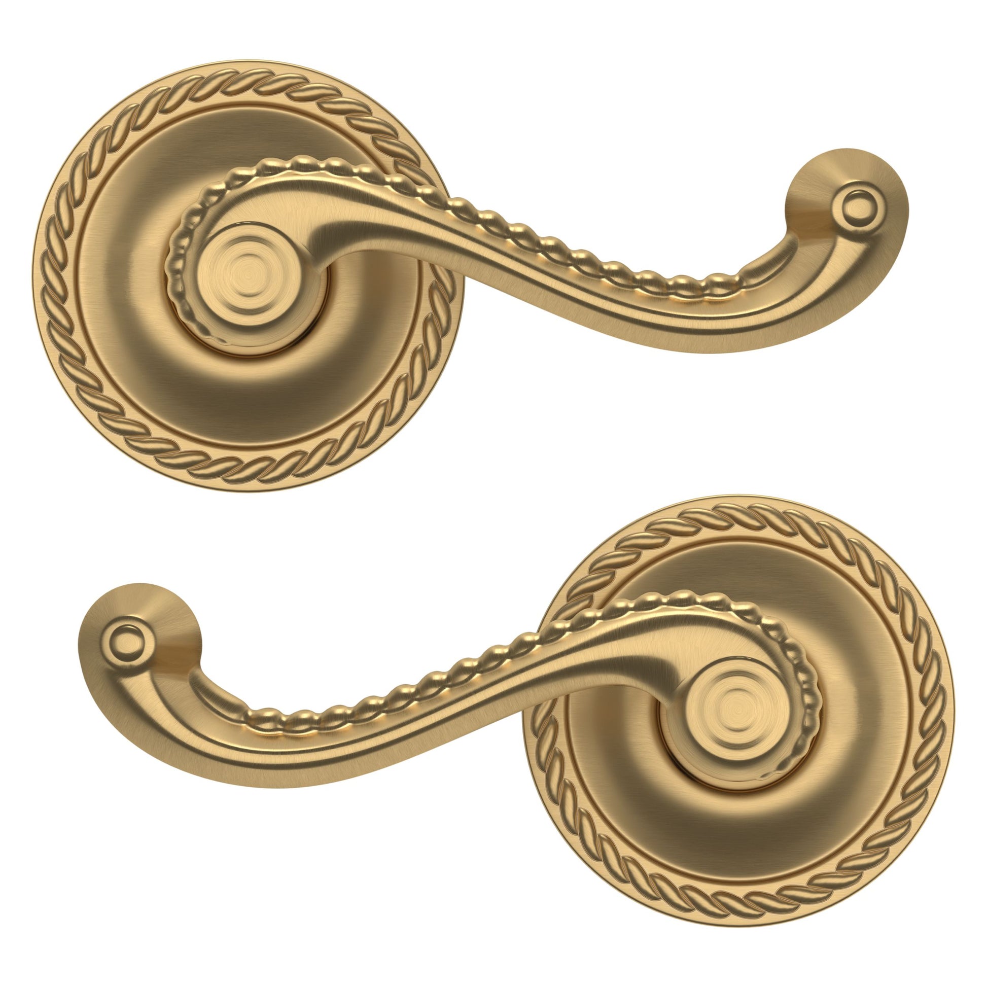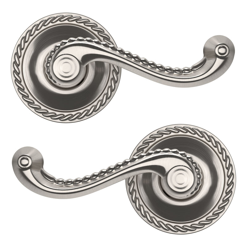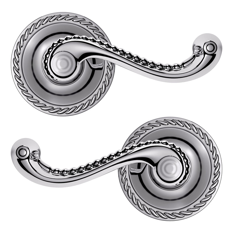 - Solid brass lever set paired with roses for any door with the 2.125" standard door preparation