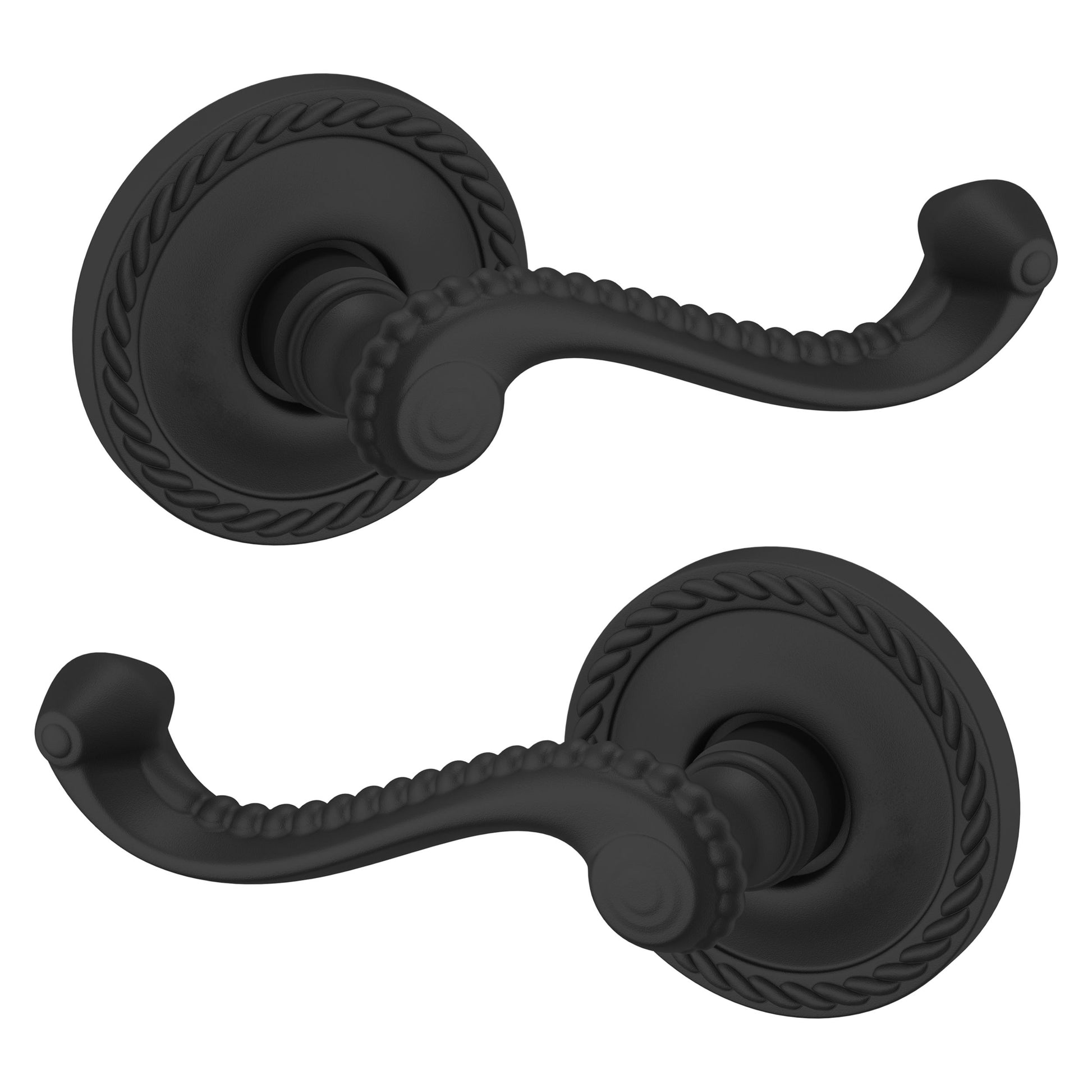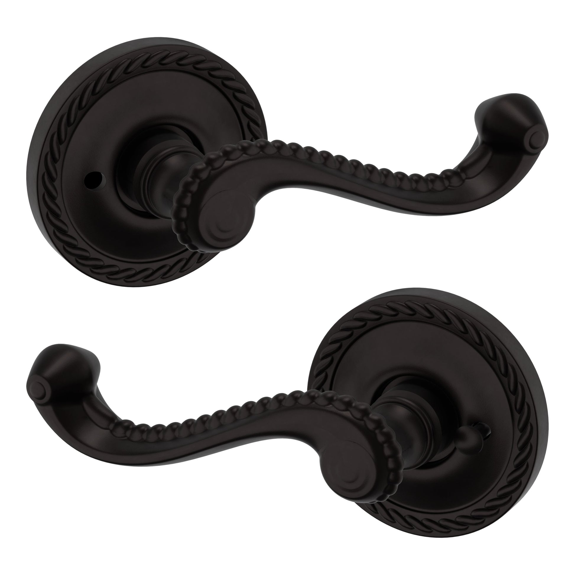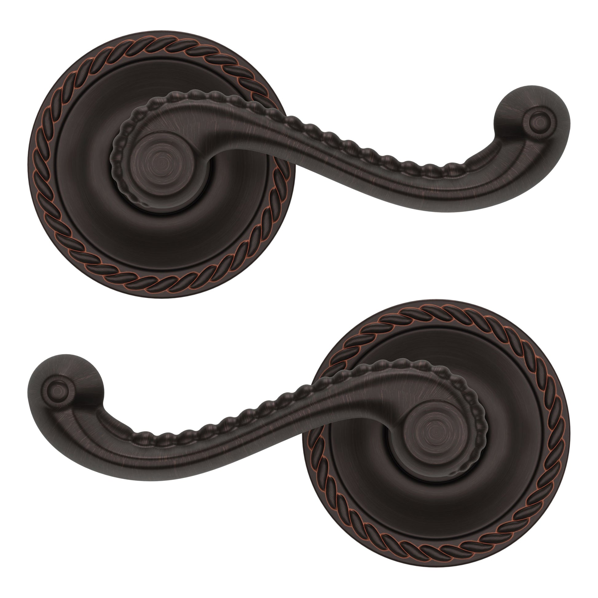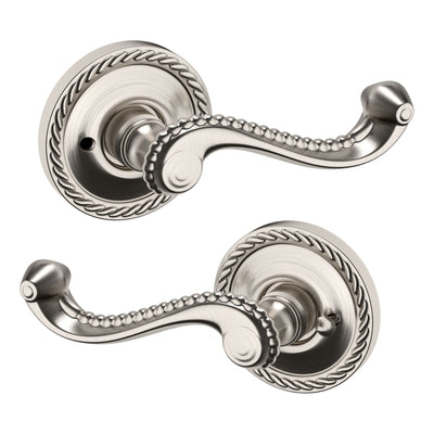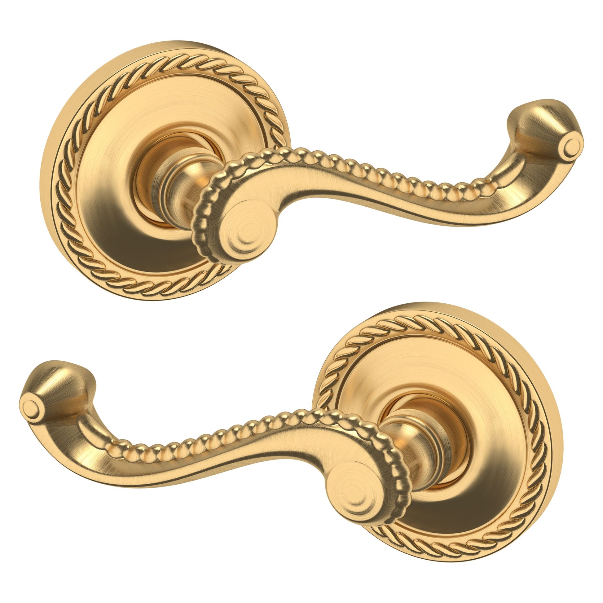 - Solid brass lever set paired with roses for any door with the 2.125" standard door preparation