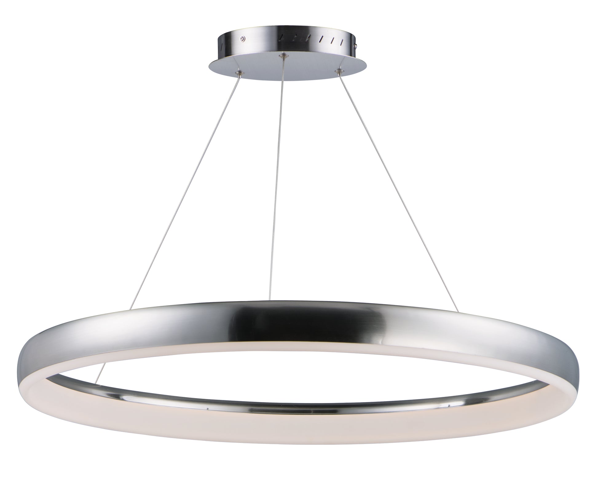 Doughnut shaped rings finished in a beautiful Satin Nickel create a soft contemporary design. LEDs are mounted at an angle to evenly illuminate the entire diffuser a soft diffused light.