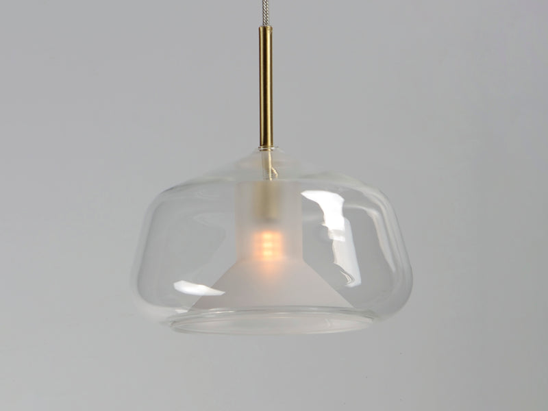 A collection of glass in glass pendants in 3 shapes and 2 finish combinations epitomizes classic contemporary design. Available in either Clear over Frost with Satin Brass accents or Smoke over Frost with Polished Chrome.