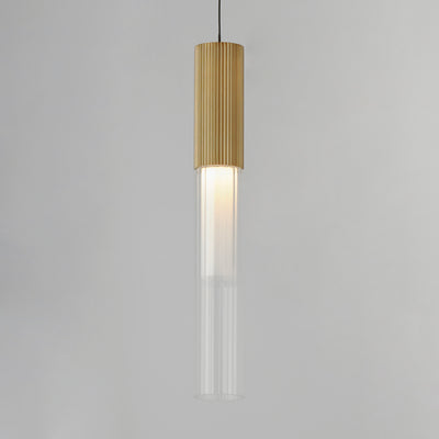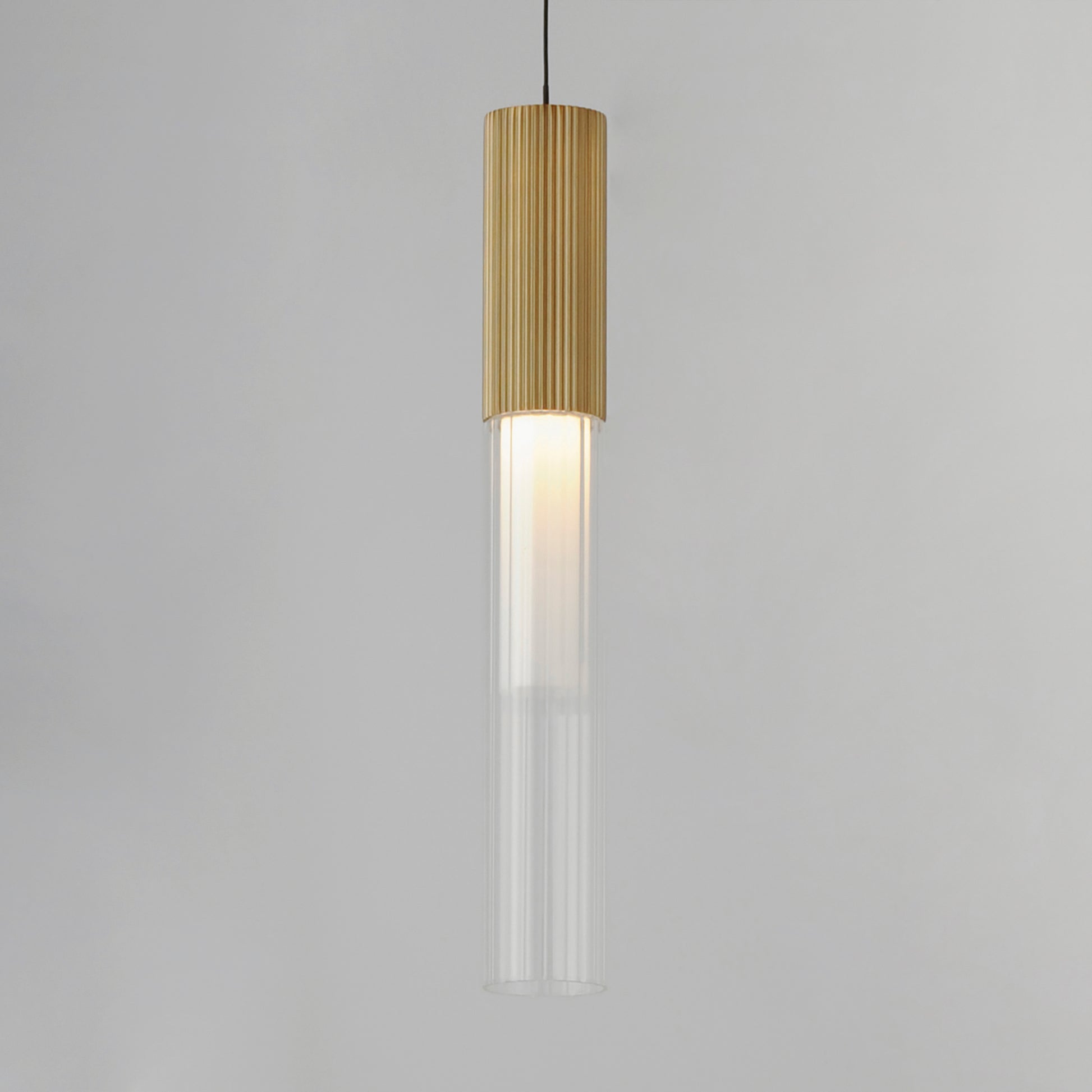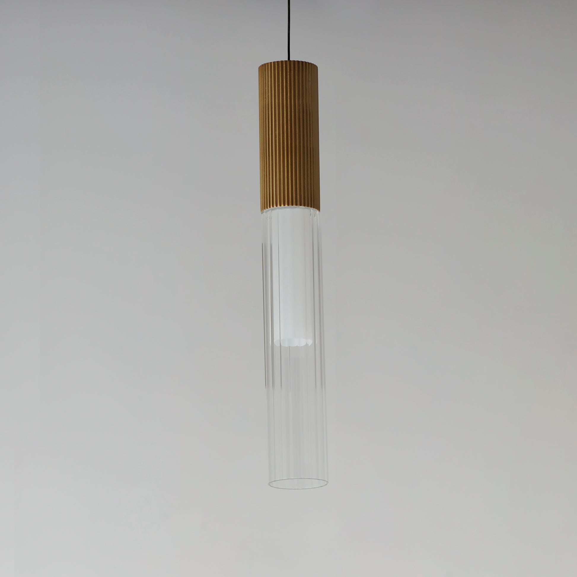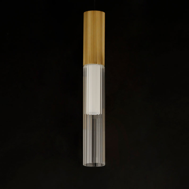 Reeded glass tubes are paired with ribbed aluminum LED housings in your choice of Gold or Matte Black finishes. The interior frosted glass diffusers soften the high-powered LED boards concealed within. The low-voltage light sources are driven by a commercially rated range voltage LED drivers with universal dimming, allowing them to be used in both residential and decorative commercial or hospitality applications. ADA compliant sconces are a welcome companion to the series as well as the fully metal stem hung pendant option designed without glass and uses a JA8 Listed LED GU10 lamp instead of dedicated LED.