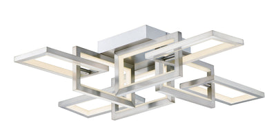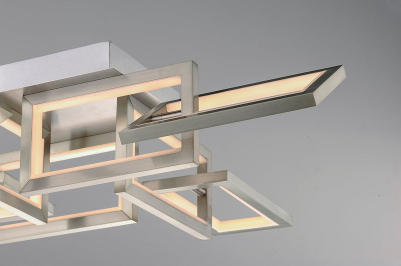 Chain links of Satin Nickel are illuminated internally by encased LED light. The suspending frames are adjustable to create different expansions of the linear pendants and flush mounts. A coordinating wall sconce completes this streamlined contemporary collection.