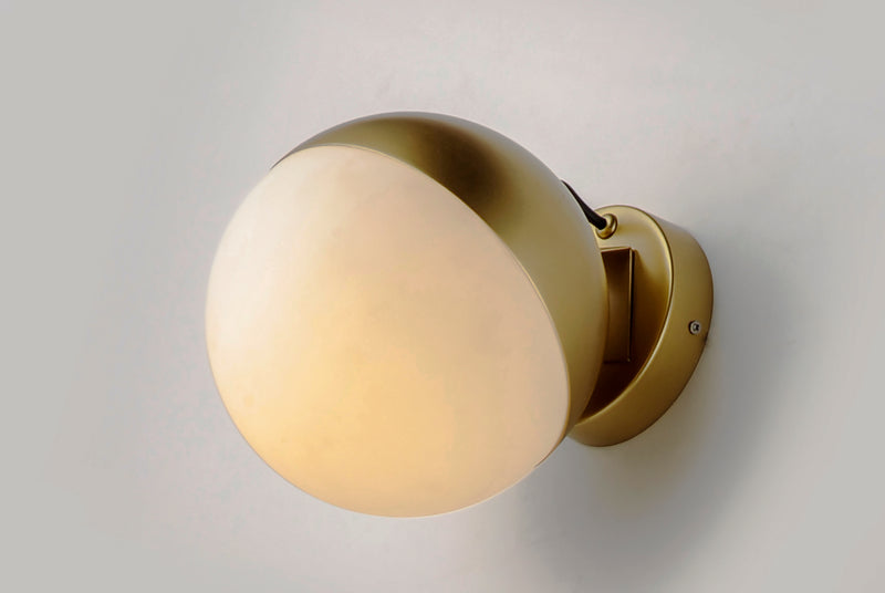 Spun metal semi spheres finished in Satin Nickel, Metallic Gold or Matte Black, cap a Satin White glass shade. Installed into each fixture is an omni-directional LED bulb that evenly illuminates the glass while providing long life operation.