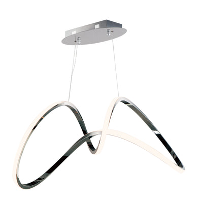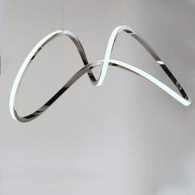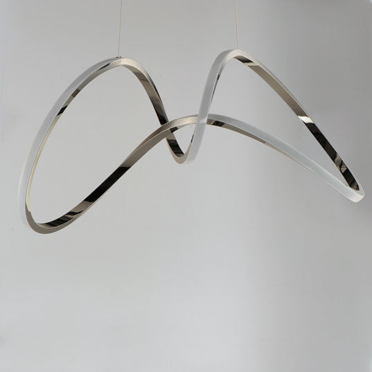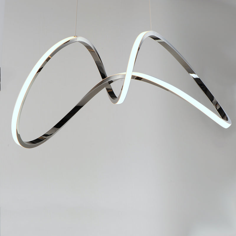 Sweeping lines curve and curl in a continuous motion, finished in a rich Brushed Champagne or Black Chrome. Not just a lighting fixture but a sculptural work of art. Gentle illumination moves in all directions for a dramatic lighting effect.