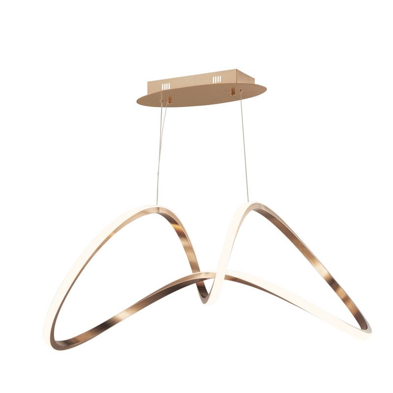 Sweeping lines curve and curl in a continuous motion, finished in a rich Brushed Champagne or Black Chrome. Not just a lighting fixture but a sculptural work of art. Gentle illumination moves in all directions for a dramatic lighting effect.