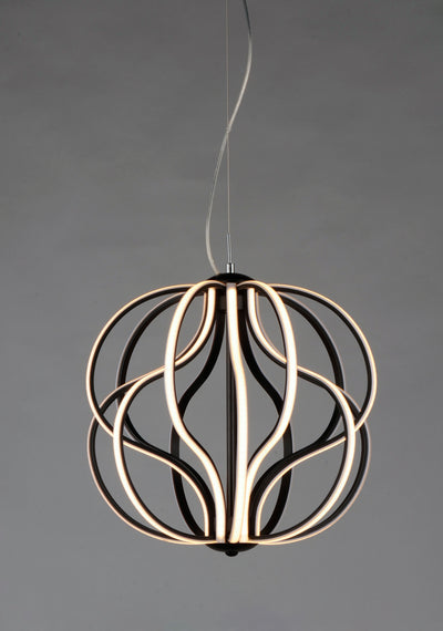 A sculpture of durable steel and aluminum channel is gracefully formed with offsetting waves of motion. This collection is fully dimmable for a great combination of form and function.