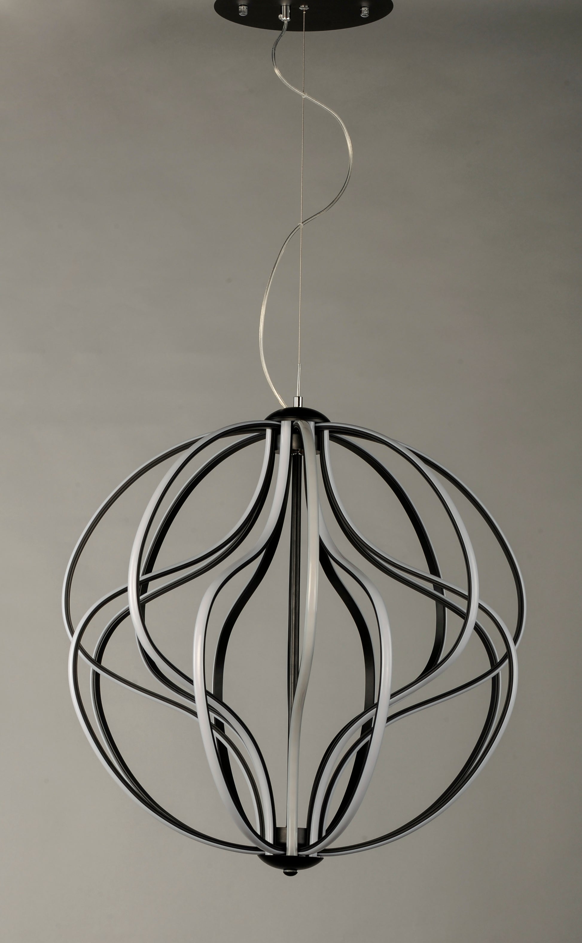 A sculpture of durable steel and aluminum channel is gracefully formed with offsetting waves of motion. This collection is fully dimmable for a great combination of form and function.