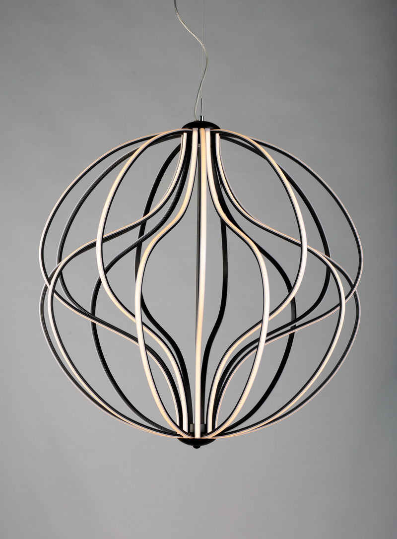 A sculpture of durable steel and aluminum channel is gracefully formed with offsetting waves of motion. This collection is fully dimmable for a great combination of form and function.