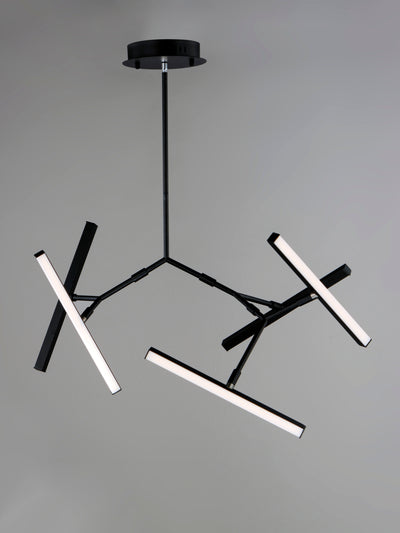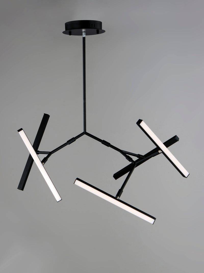 This unique design features arms that branch in multiple directions, both rotating and pivoting that allows light to be directed where needed. The Black finish is a dramatic contrast to the V shaped acrylic diffuser which disperses light in two directions. A high powered LED light engine is fully dimmable for your desired light level.