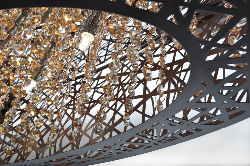 Legendary meets contemporary with the Inca Collection. Reminiscent of the mythical tales of Incan treasures, the fixtures offer brilliantly shining crystal enclosed within a precision laser-cut sheath that cannot be duplicated. The glow of the light from within casts a beautifully radiant shine that adorns the outer permeable layer.