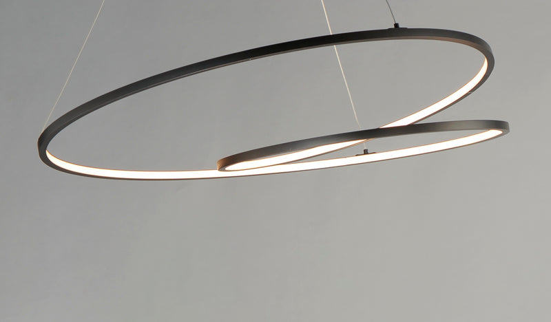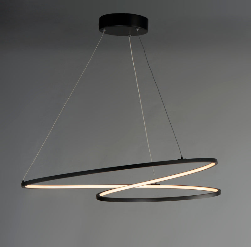 This playful design of a continuous channel spiraling from the canopy to create unique lighting sculptures. LED mounted inside the channel provides ample illumination with an indirect effect.