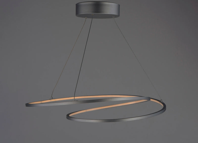 This playful design of a continuous channel spiraling from the canopy to create unique lighting sculptures. LED mounted inside the channel provides ample illumination with an indirect effect.