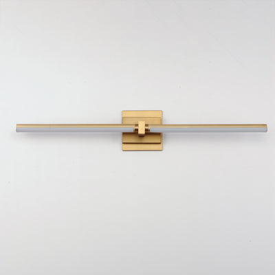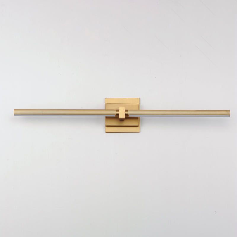 A bold and timeless sconce, Dorian features a sleek, square block support with two cylinder LED tubes horizontally extended. These tubes rotate individually to allow the LED light unique positioning. The collection features linear and vertical pendant configurations with slender profiles that offer enhanced visibility. The elongated vertical pendants are perfect to light lofty spaces. Their rotatable extensions direct the light along areas such as stairwells and can highlight artwork and collectible displays at taller heights. The wall-mounted sconces offer similar features with additional streamlined back plate designs that mounts to either a single gang junction box or common 3-0 or 4-0 boxes with cover plate included. These sconces suit light portraits, shelves, or work as bath vanities. They extend less than four inches in compliance with ADA standards. Available in Matte Black, Polished Chrome, and plated Gold, this collection is a subtle, handsome design with timeless appeal.