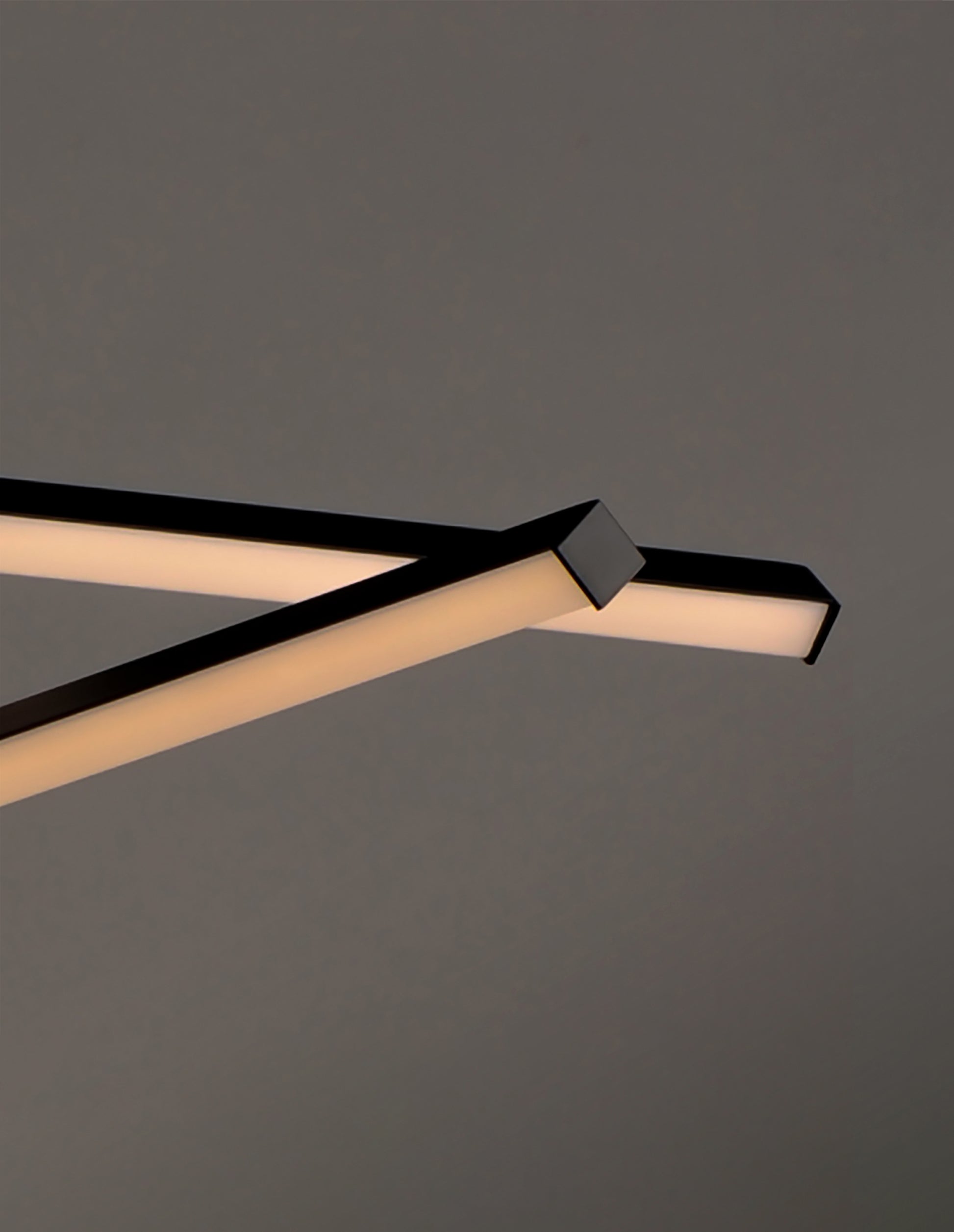 Minimalist batons of extruded Black aluminum are fitted with V shaped acrylic diffusers for a wider beam of light. They can be arranged in numerous configurations allowing creativity and design of your own unique sculpture.